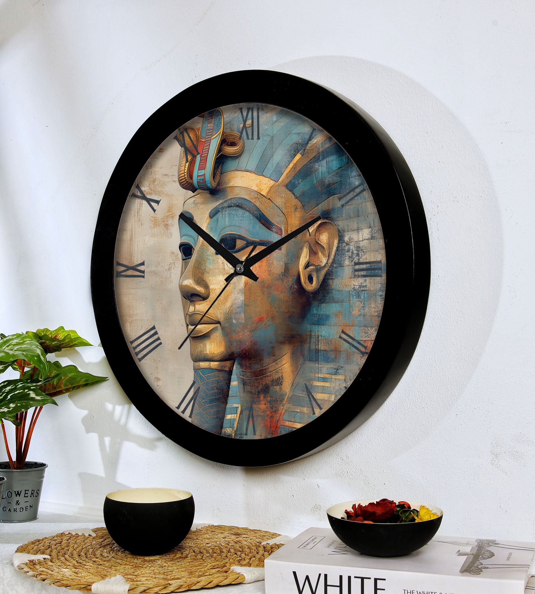 Tutankhamun mask Wall clock with resin frame and glass cover