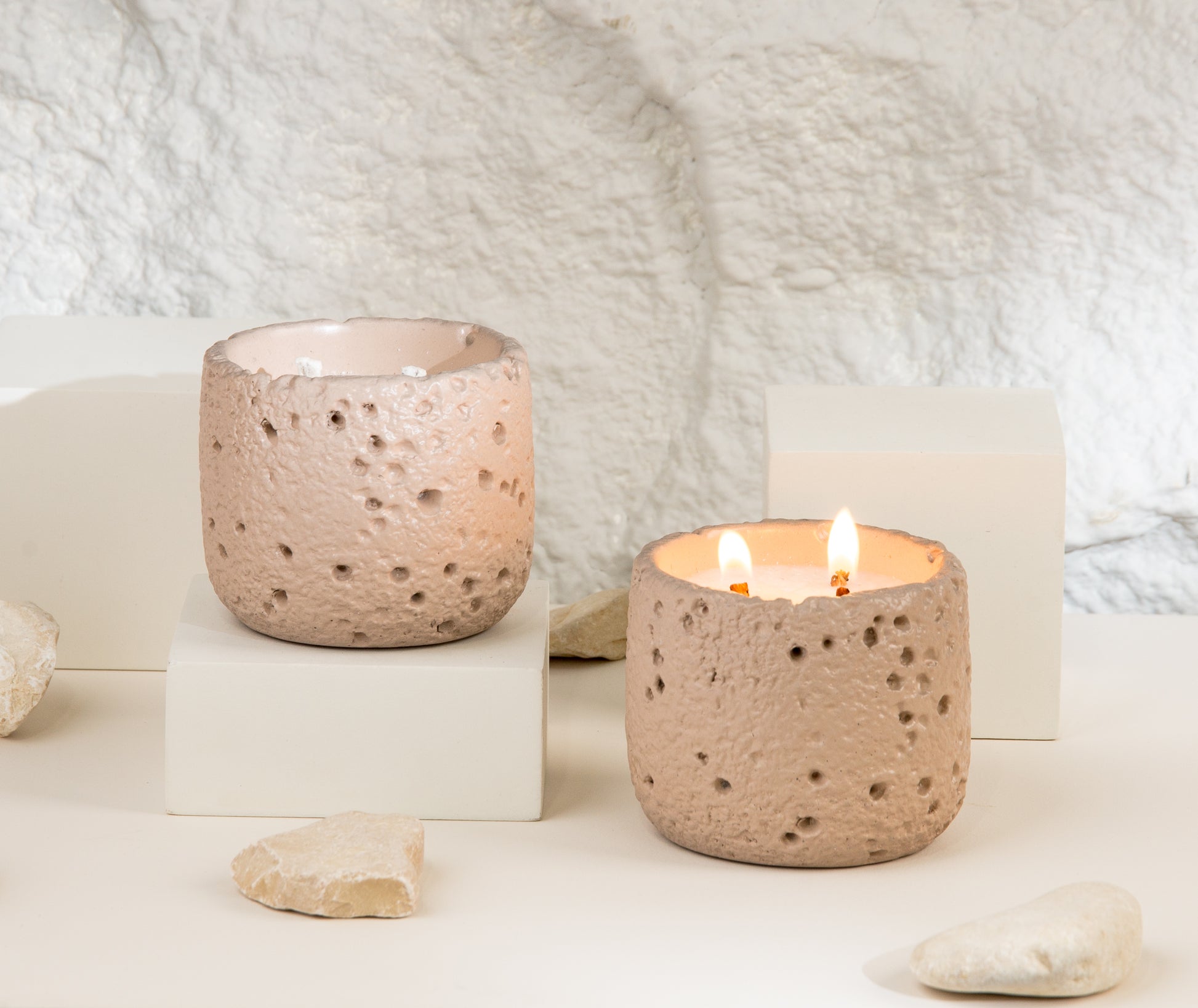 The candle comes in a textured stone-like container, giving it an elegant, minimalist look that perfectly complements Japandi, Boho, or modern interiors.