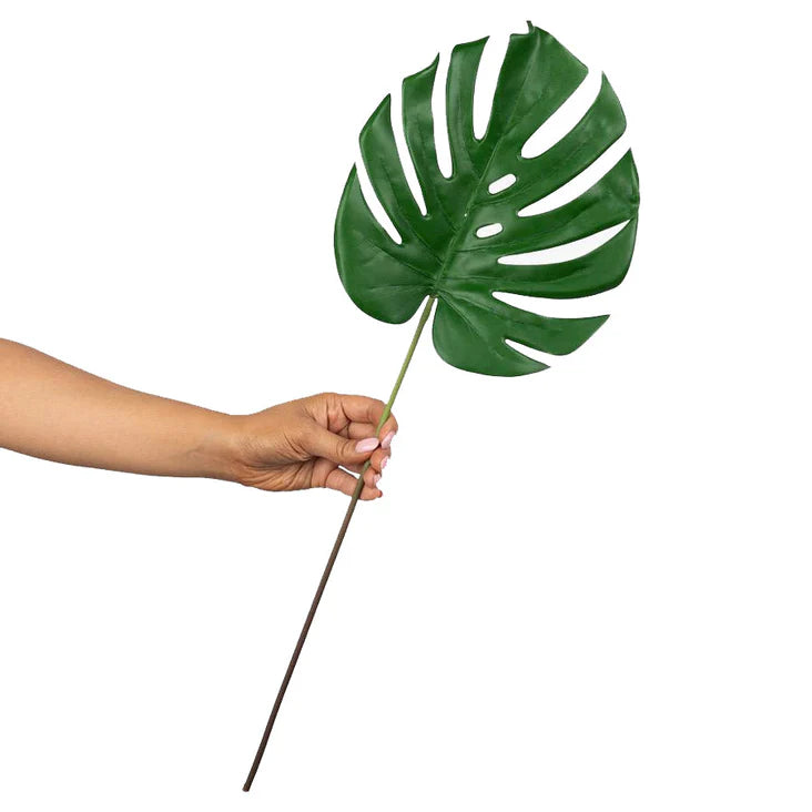 Elevate your interior with this striking single Monstera leaf floral arrangement. Featuring the iconic split-leaf design that defines modern botanical aesthetics, this piece brings sophisticated greenery to any space. Perfect for minimalist décor or as a statement accent, the Monstera's natural elegance requires minimal maintenance while delivering maximum visual impact. Ideal for plant enthusiasts and design-conscious homeowners seeking authentic botanical charm without the commitment of live plant care.
